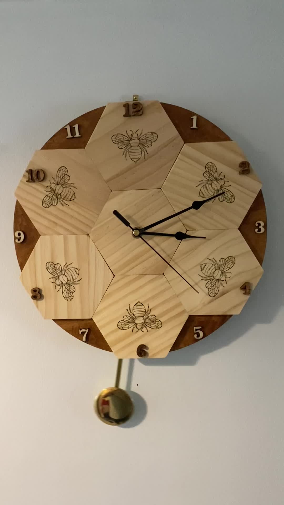 Bee clock wood hands 30cm
